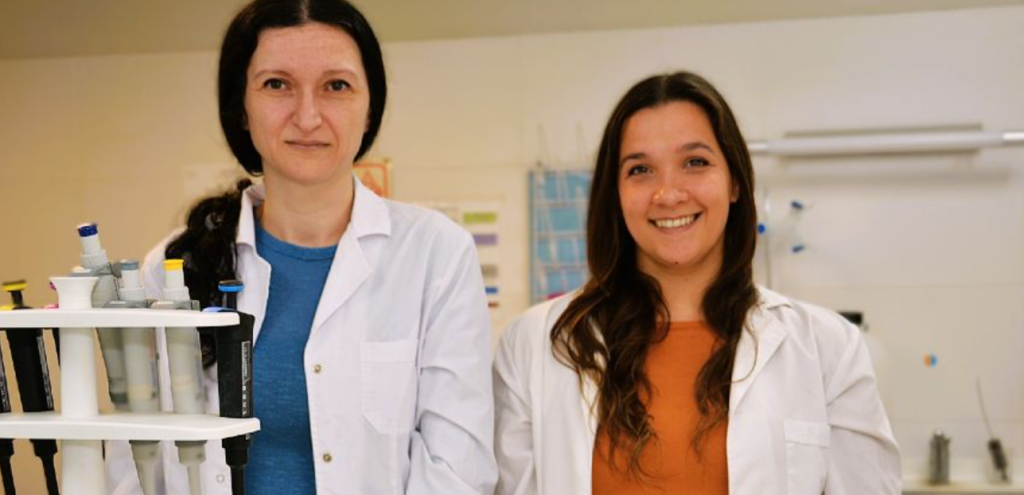 (De der. a izq.) Daiana Vitale, primera autora del estudio, e Ina Sevic, ambas investigadoras de la UNNOBA. Créditos: Unnoba.