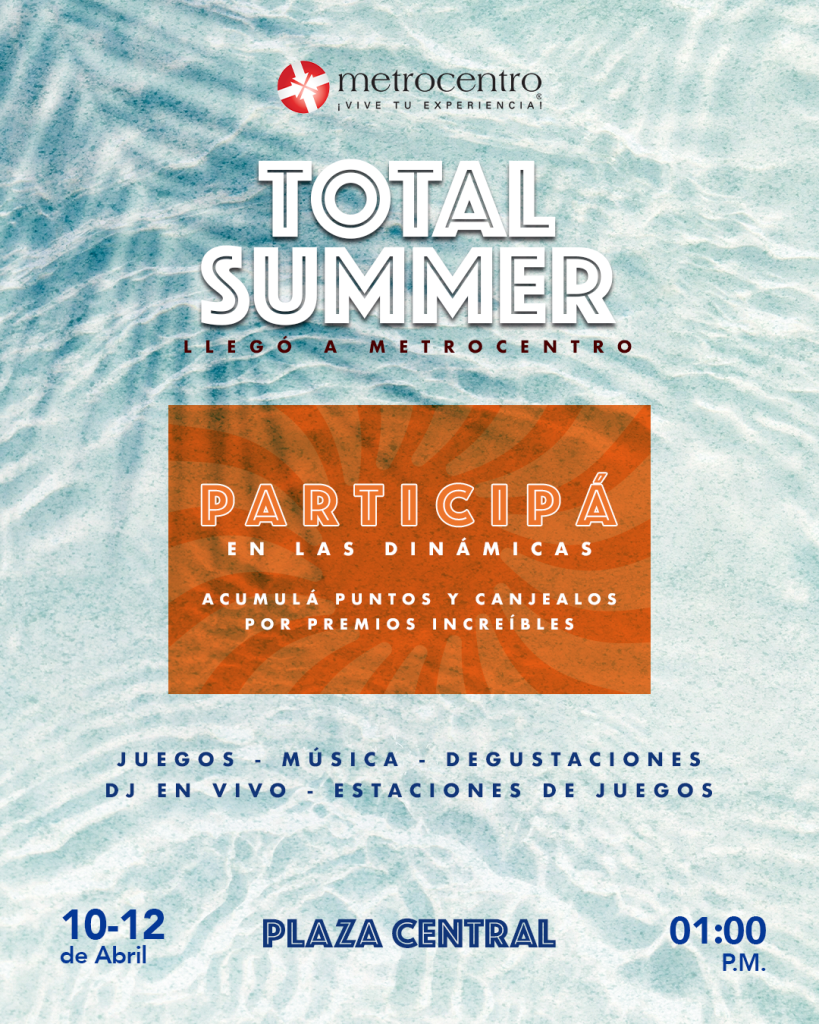 Metrocentro anuncia su vibrante evento “Total Summer”, una experiencia pensada para que las familias y visitantes disfruten de actividades llenas de entretenimiento, música y premios.