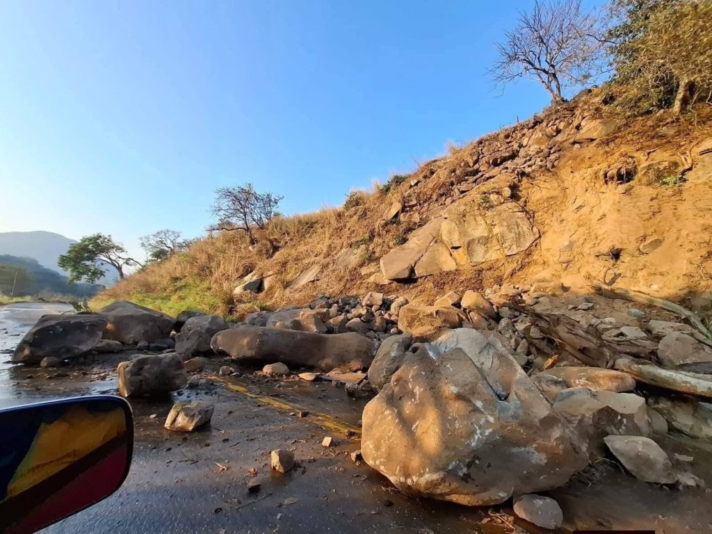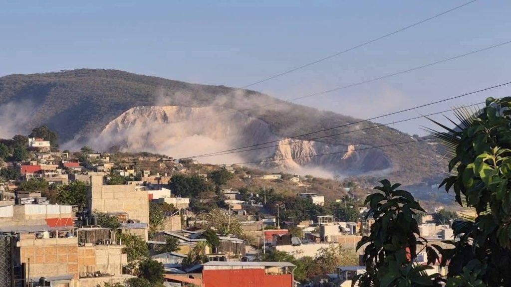 Foto de una cerro donde caen rocas tras el potente sismo.