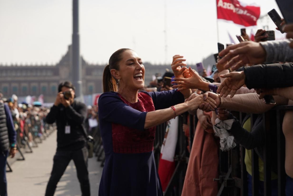 Claudia Sheinbaum Pardo saludando a sus partidarios.