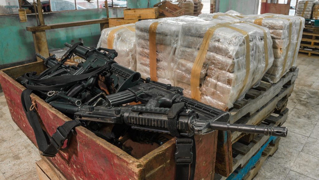 Armas de guerra confiscadas a narcos en México.