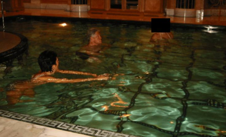 En otra imagen se ve al expresidente junto a Ghislane Maxwell y una fémina más en una piscina.
