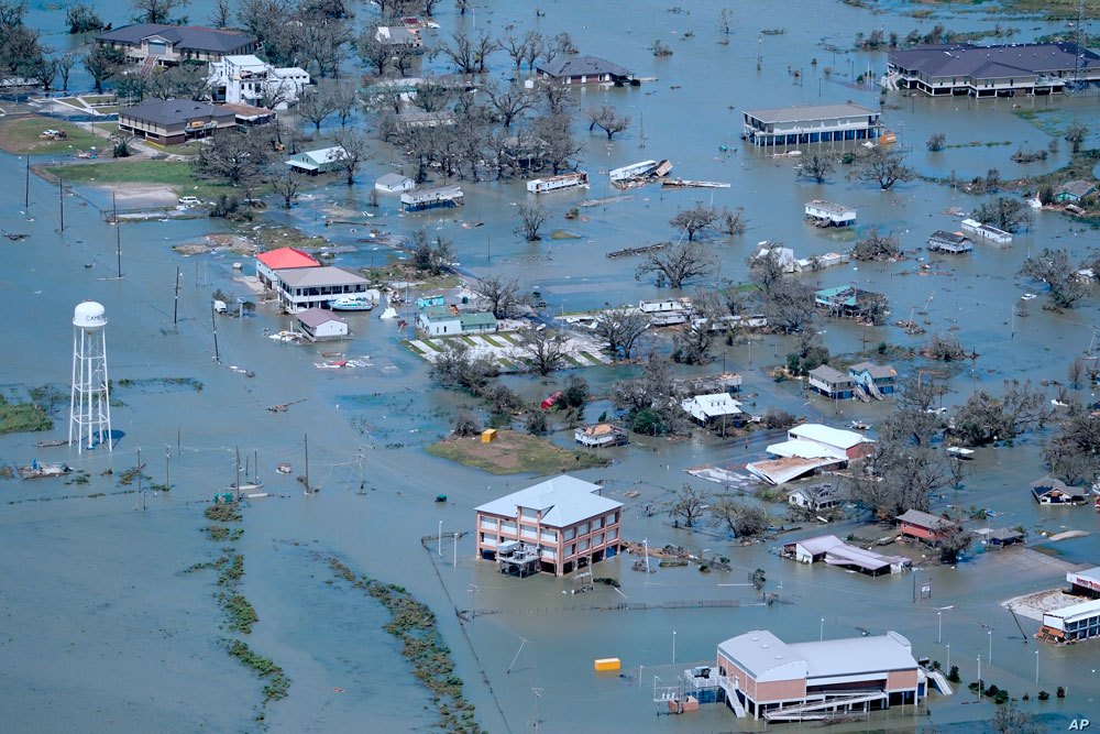 Edificios y casas se inundaron después del huracán Laura el jueves 27 de agosto de 2020, cerca de Lake Charles, Luisiana (AP Photo / David J. Phillip)