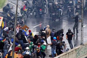 Cubriéndose con barricadas de escombros, los manifestantes, en su mayoría jóvenes, devolvieron las lacrimógenas y lanzaron piedras y cócteles molotov a los uniformados.
