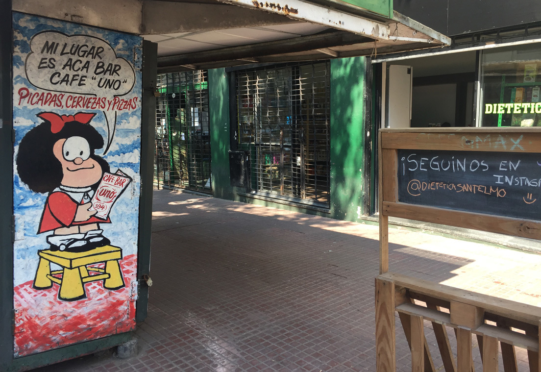 Mural de Mafalda en el barrio de San Telmo, en Buenos Aires, Argentina. Foto Cecilia González, RT.