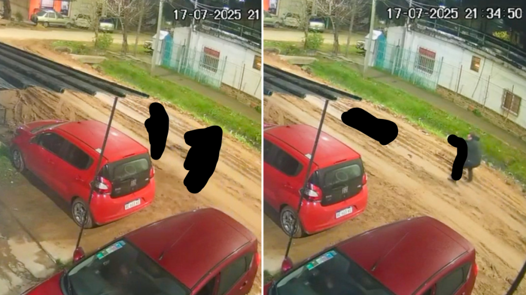 El hecho ocurrió el jueves en la localidad de Villa Centenario. Videos de las cámaras de seguridad muestran al agente y a su pareja subiéndose al auto estacionado frente a su domicilio, cuando un vehículo gris se detiene en la parte de atrás y salen de él los tres delincuentes.