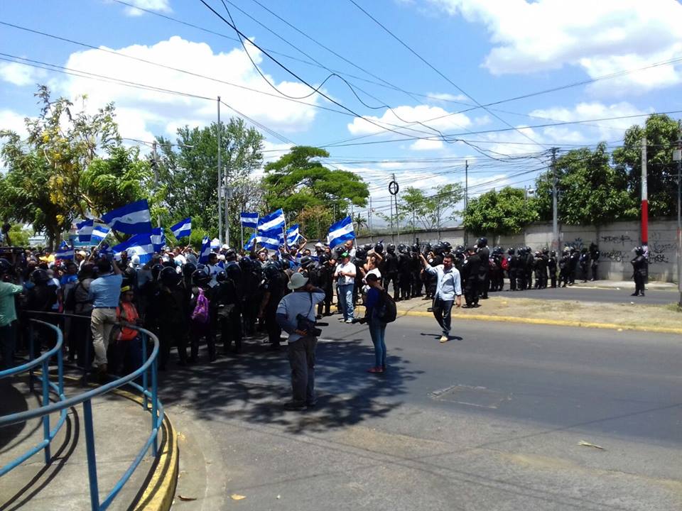 Mediaron, hablaron con los antimotines, prácticamente los pintaron con los colores de la bandera de Nicaragua azul y blanco, algunos hasta dirigían su vista al piso, pero no les pudieron ni quitar el nombre de la persona que estaba a cargo de ubicar tres líneas de antimotines, exactamente comenzando el portón principal de donde es el antiguo Hospital Militar.