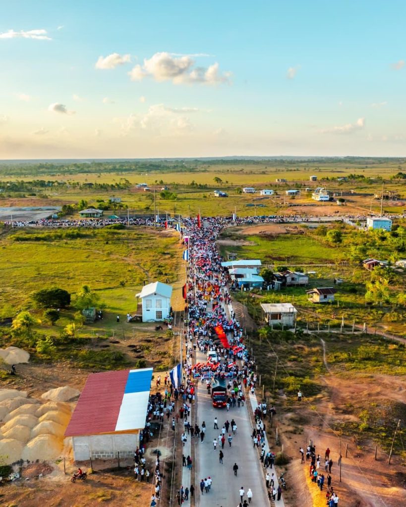 Previo a la entrega, todas las comunidades de la Región Autónoma de la Costa Caribe Norte se congregaron para caminar desde dos puntos: desde el empalme de Tuapi, familias de Mulukuku y Triángulo Minero, y desde el retén de Puerto Cabezas, familias de Waspán, Prinzapolka y Bilwi.