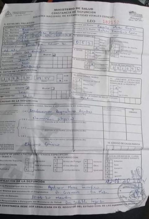 Patricia Meza Martínez, sobrina del fallecido explicó que su tío el martes 9 de junio, acudió al centro de salud de la comunidad Los Zarzales del municipio El Jicaral-León, sin embargo lo regresaron a su casa solo con acetaminofen para controlar la fiebre.