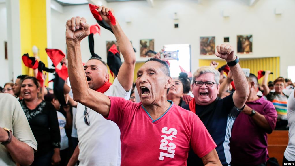 Simpatizantes de Daniel Ortega corean “traidor” durante las honras fúnebres del poeta nicaraguense Ernesto Cardenal en la Catedral Metropolitana de Managua.