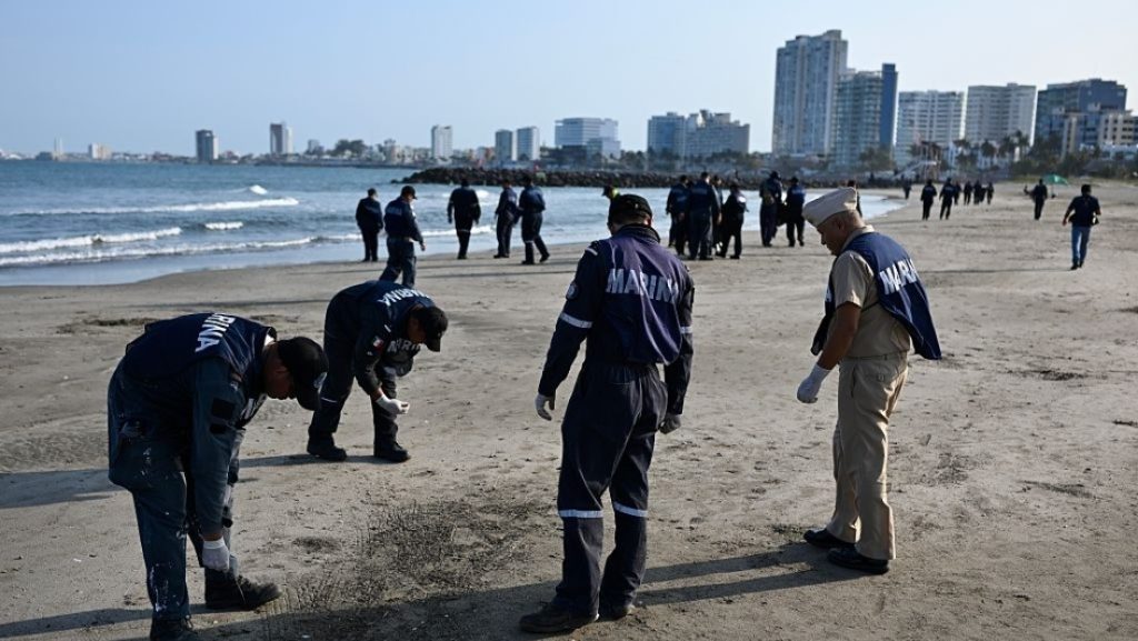 Morales indicó que, de acuerdo con los estudios, han concluido que “hay tres fuentes” que ocasionaron esta contaminación. La primera es “un buque que estuvo fondeado en inmediaciones de Coatzacoalcos”, que aún no ha sido identificado, pues en el área estuvieron al menos 13 embarcaciones.