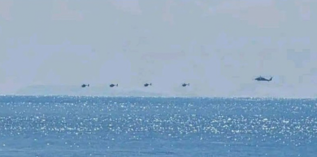 Los helicópteros de EEUU vistos desde la costa de Venezuela, de acuerdo a reportes locales.