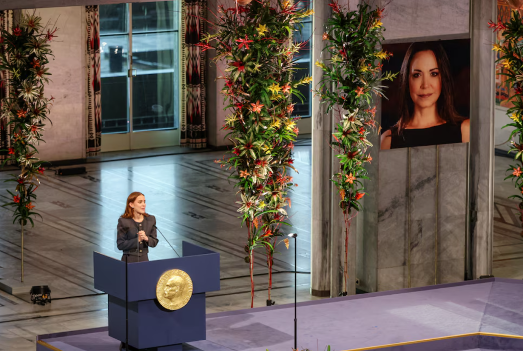La entrega del Premio Nobel de la Paz 2025 a María Corina Machado, fue recibido por su hija Ana Corina Sosa Machado en Oslo y se ha vuelto un testimonio de la resistencia venezolana y en una reflexión sobre el significado universal de la libertad.