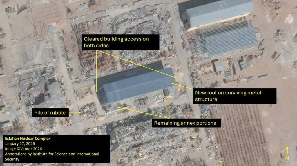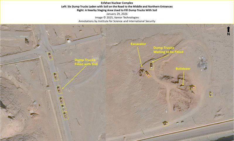 Imágenes satelitales recientes de la planta nuclear de Isfahán muestran nueva actividad en las entradas de los túneles, que se cree que contienen 408 kilogramos de uranio altamente enriquecido de Irán.