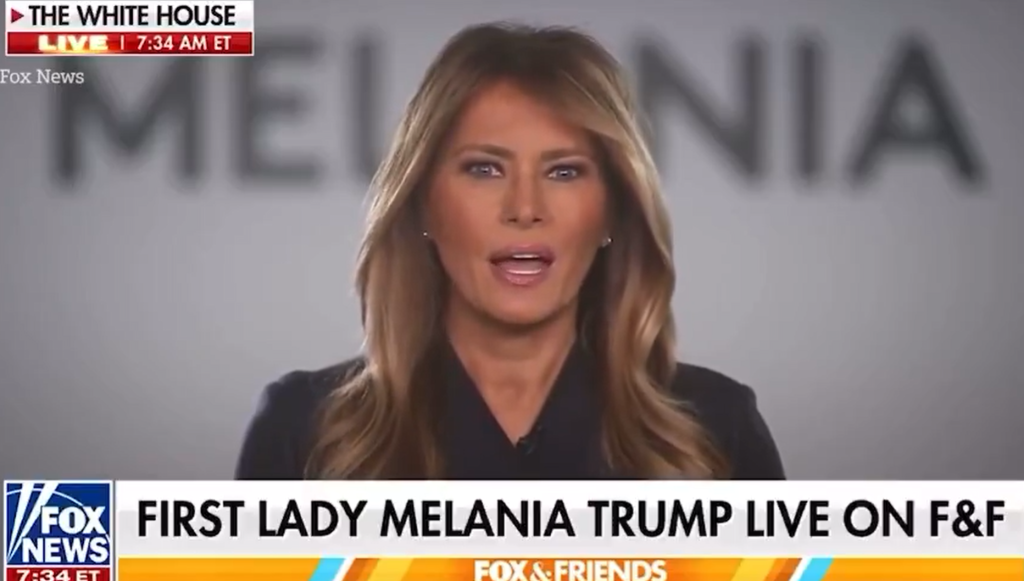 Melania Trump, durante su mensaje a la nación.