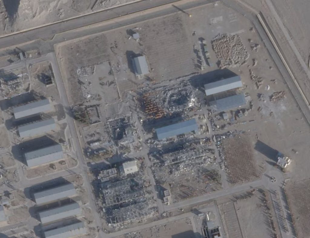 Imagen satelital de archivo que muestra un techo nuevo sobre un edificio previamente destruido en el sitio nuclear de Isfahán, Irán (PLANET LABS PBC/vía Reuters)