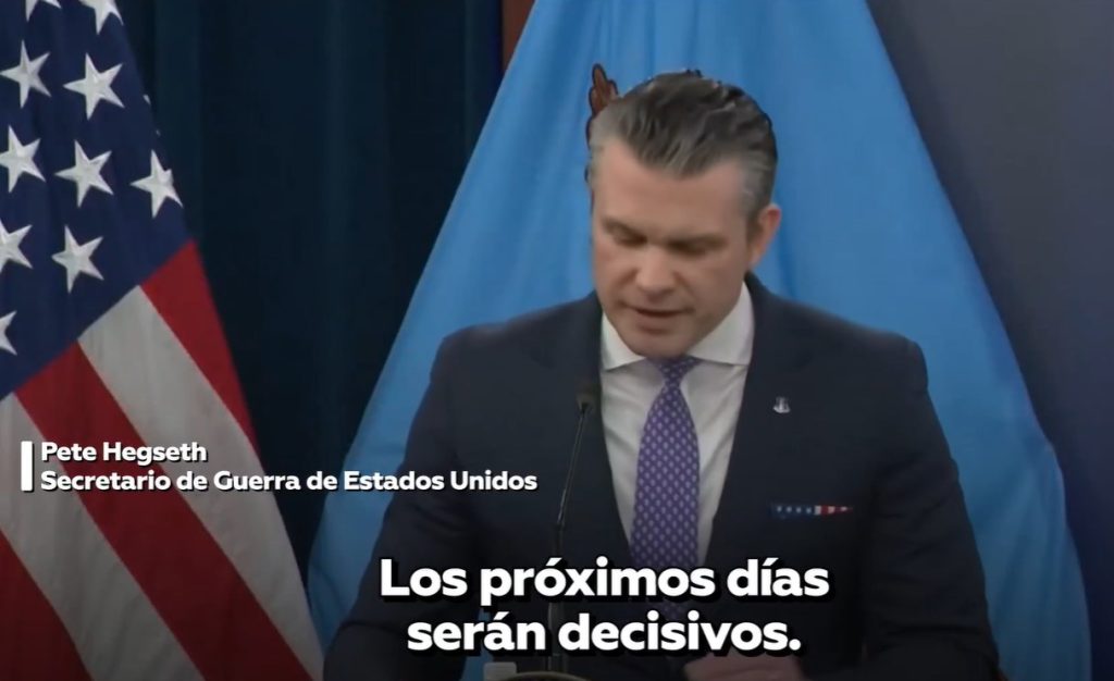 Al mismo tiempo, el jefe del Pentágono lanzó una advertencia a Teherán. “Si Irán no está dispuesto [a llegar a un acuerdo], el Departamento de Guerra de Estados Unidos continuará con mayor intensidad [sus ataques]”, declaró.