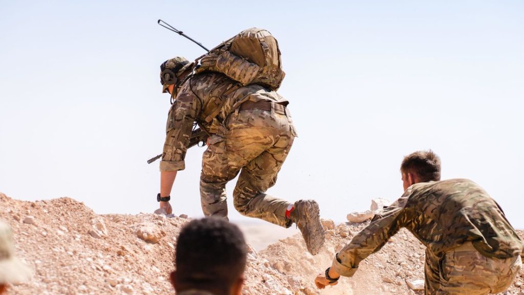 Soldados del Ejército británico realizando ejercicios de reconocimiento de terreno.