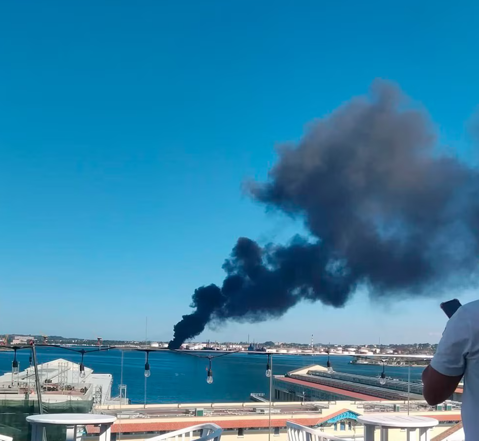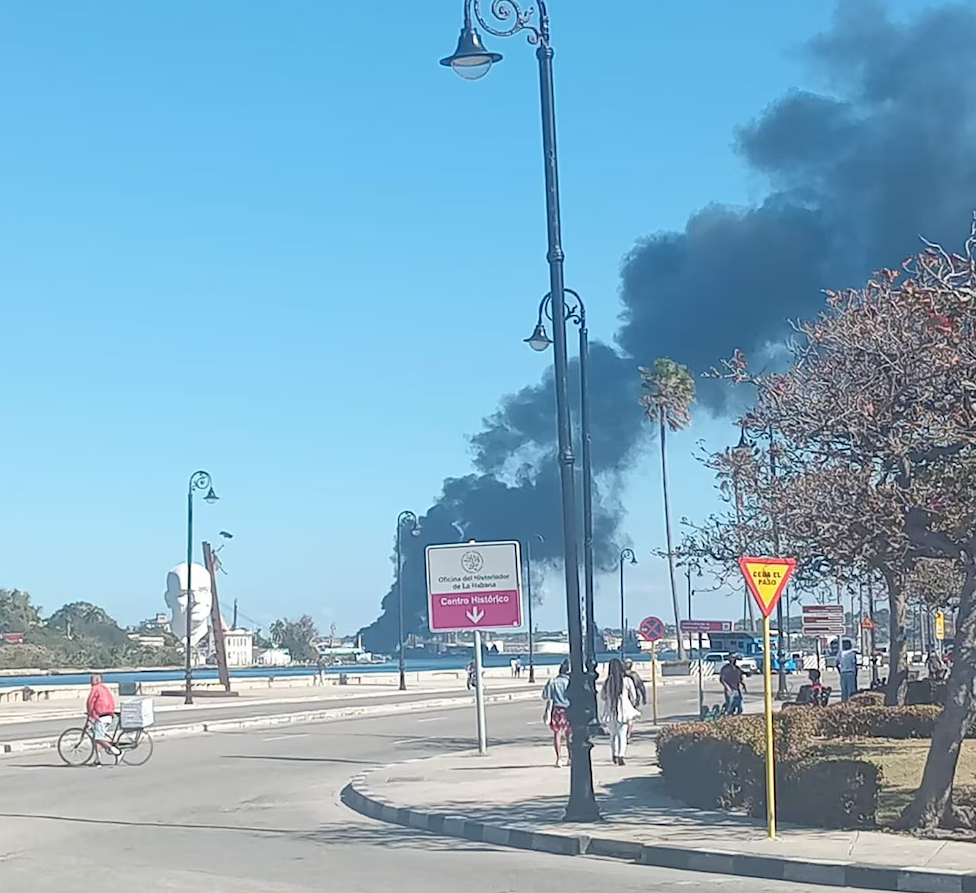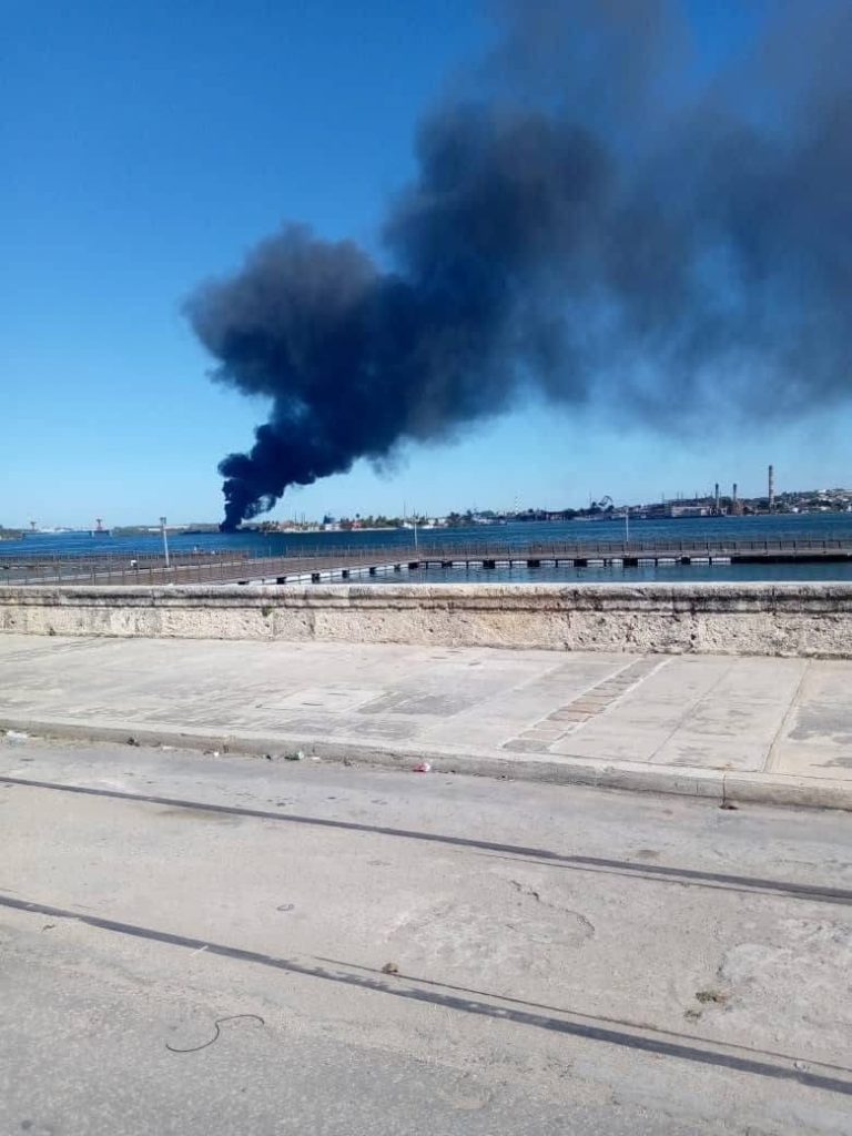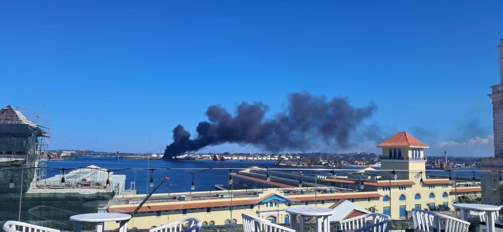 El humo se puede ver desde toda la capital trsa el incendio en la refinería Ñico López, en La Habana.