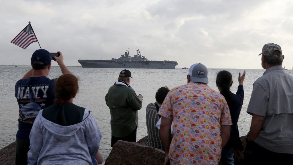 Vista del pase de un barco de guerra de EEUU.
