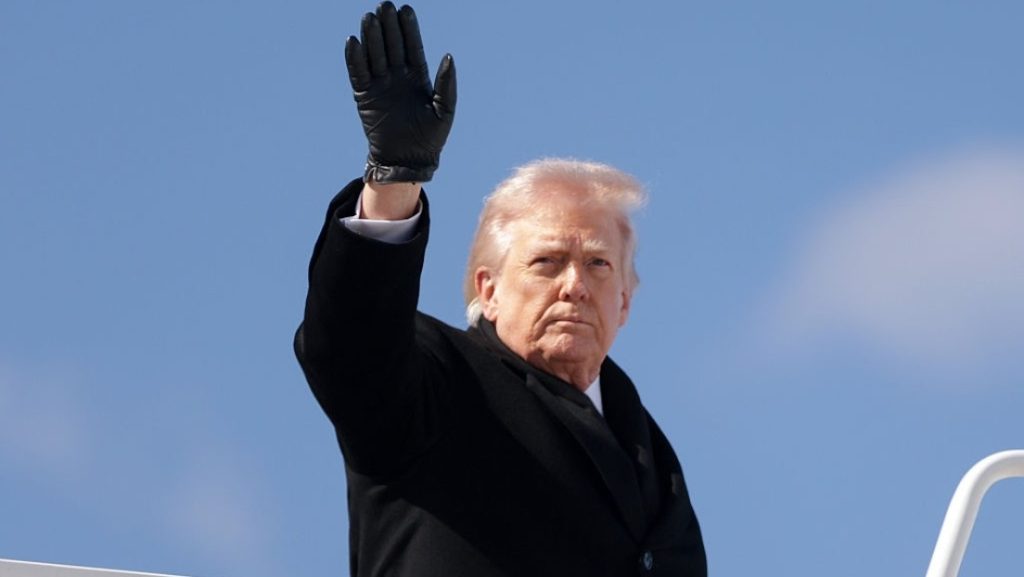 El presidente de EE.UU., Donald Trump, saluda mientras sube al Air Force One en la Base de la Fuerza Aérea de Dover el 18 de marzo de 2026 en Dover, Delaware.