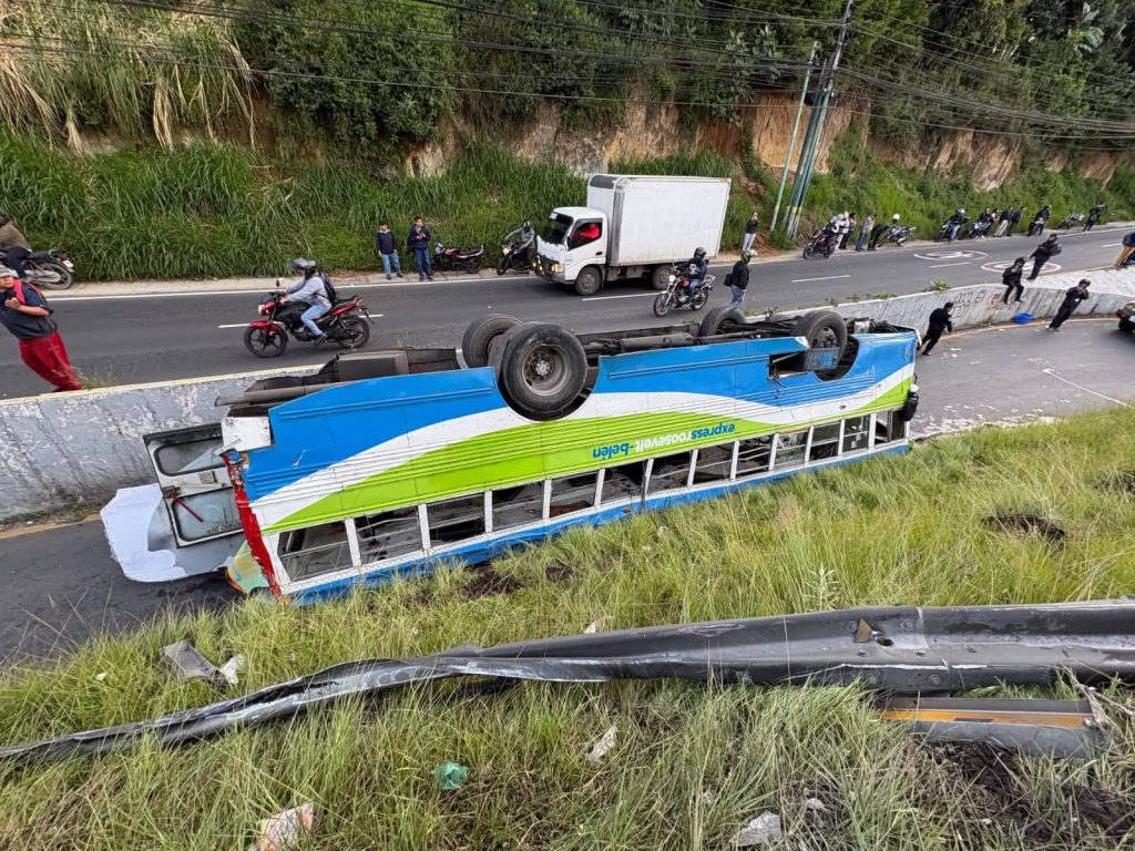 Un bus de los Express Mixco – BELÉN, que iba desde la colonia La Brigada, zona 7 de Mixco en Guatemala, hacia la Terminal, se volcó en el viaducto de incorporación de zona 7 de Mixco hacia la carretera Interamericana, cayendo del puente Tinco y quedando volcado sobre la vía.