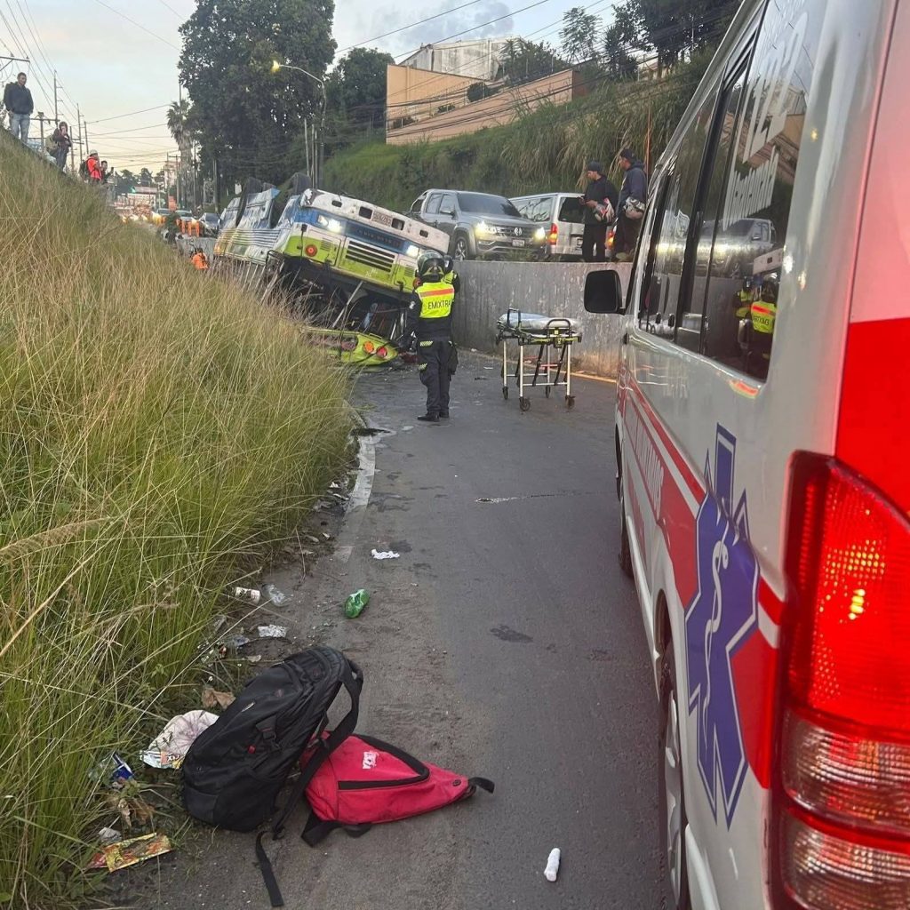 Un bus de los Express Mixco – BELÉN, que iba desde la colonia La Brigada, zona 7 de Mixco en Guatemala, hacia la Terminal, se volcó en el viaducto de incorporación de zona 7 de Mixco hacia la carretera Interamericana, cayendo del puente Tinco y quedando volcado sobre la vía.