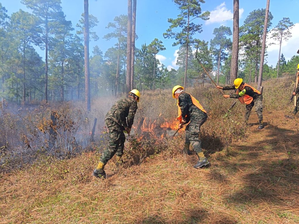 Honduras.- Las Fuerzas Armadas de Honduras participaron activamente durante el fin de semana en el combate y control de siete incendios forestales registrados en diferentes sectores del país.