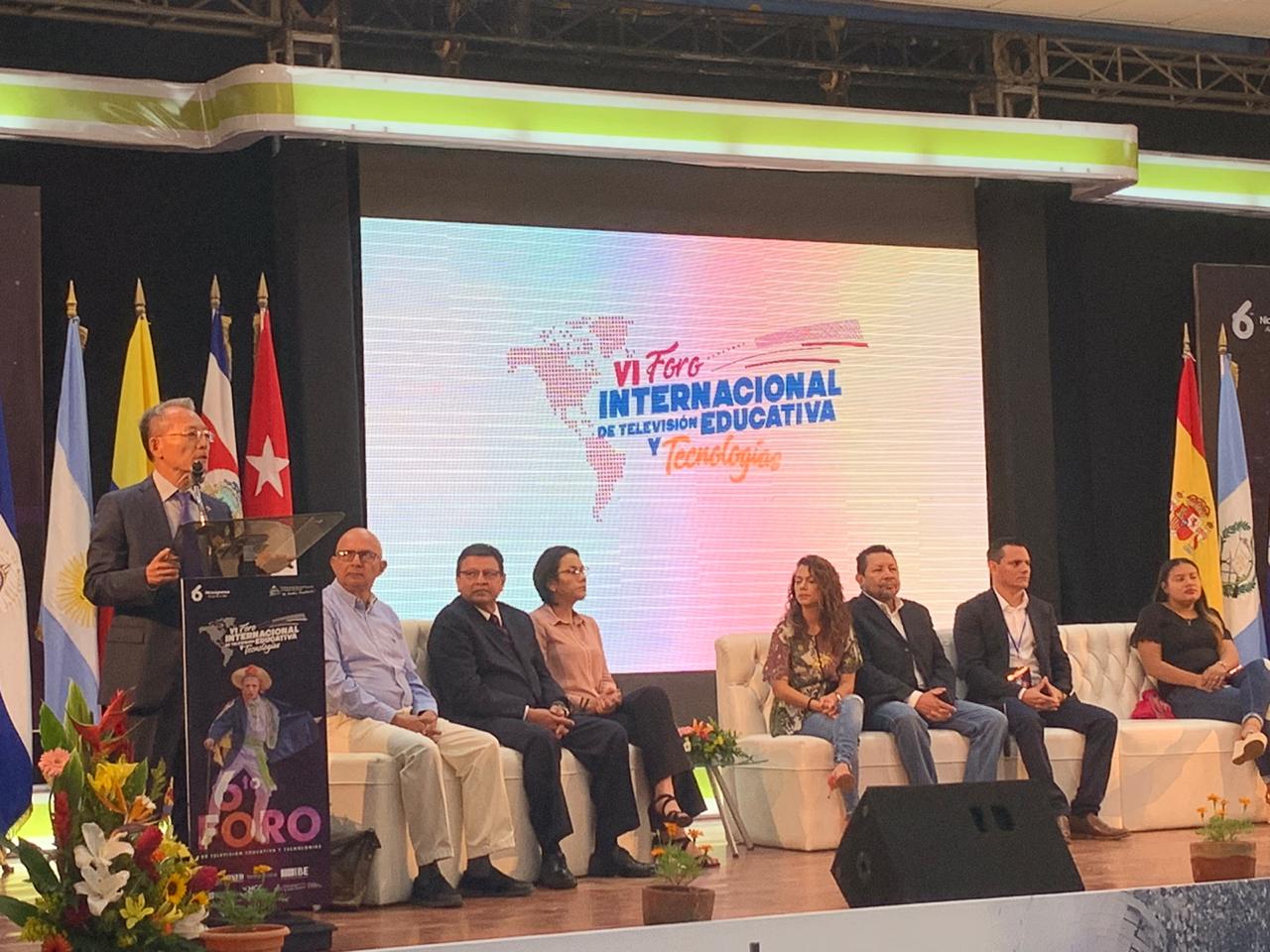 En el Auditorio Fernando Gordillo Cervantes, de la UNAN-Managua, el Embajador de la República de China (Taiwán) Jaime Chin-Mu Wu, el Director General de Canal 6 Aarón Peralta, así como el Ministro Asesor de la Presidencia de la República para temas de Educación y representante del MINED, Salvador Vanegas, presidieron la inauguración del “VI Foro Internacional de Televisión Educativa y Nuevas Tecnologías, Nicaragua 2020”. En el acto estuvieron presente la Directora Ejecutiva del INTUR Anasha Campbell, la Directora Ejecutiva del INATEC Loyda Barreda, el Secretario Ejecutivo de la Asociación de Televisión Educativa y cultural Iberoamericana (ATEI), Sr. Miquel Francés I Domènec, el Director de Economía Creativa y Naranja de la Secretaría Privada para Políticas Nacionales de la Presidencia de la República Humberto González, Jaime López Lowery, Vicerrector de la UNAN-Managua, funcionarios de públicos, Especialistas y Productores Audiovisuales internacionales, así como miembros de la Embajada de Taiwán.