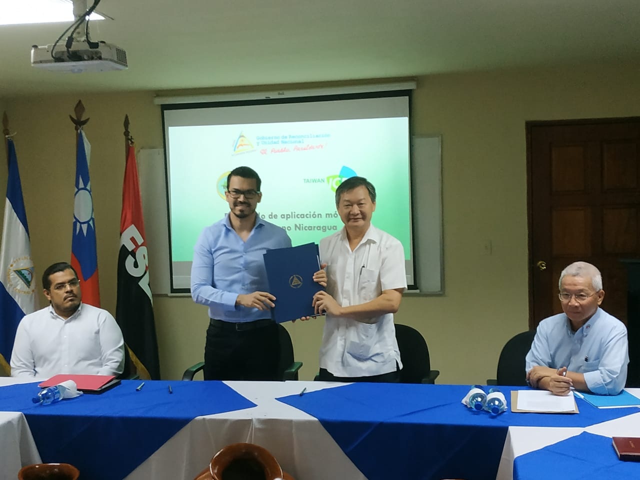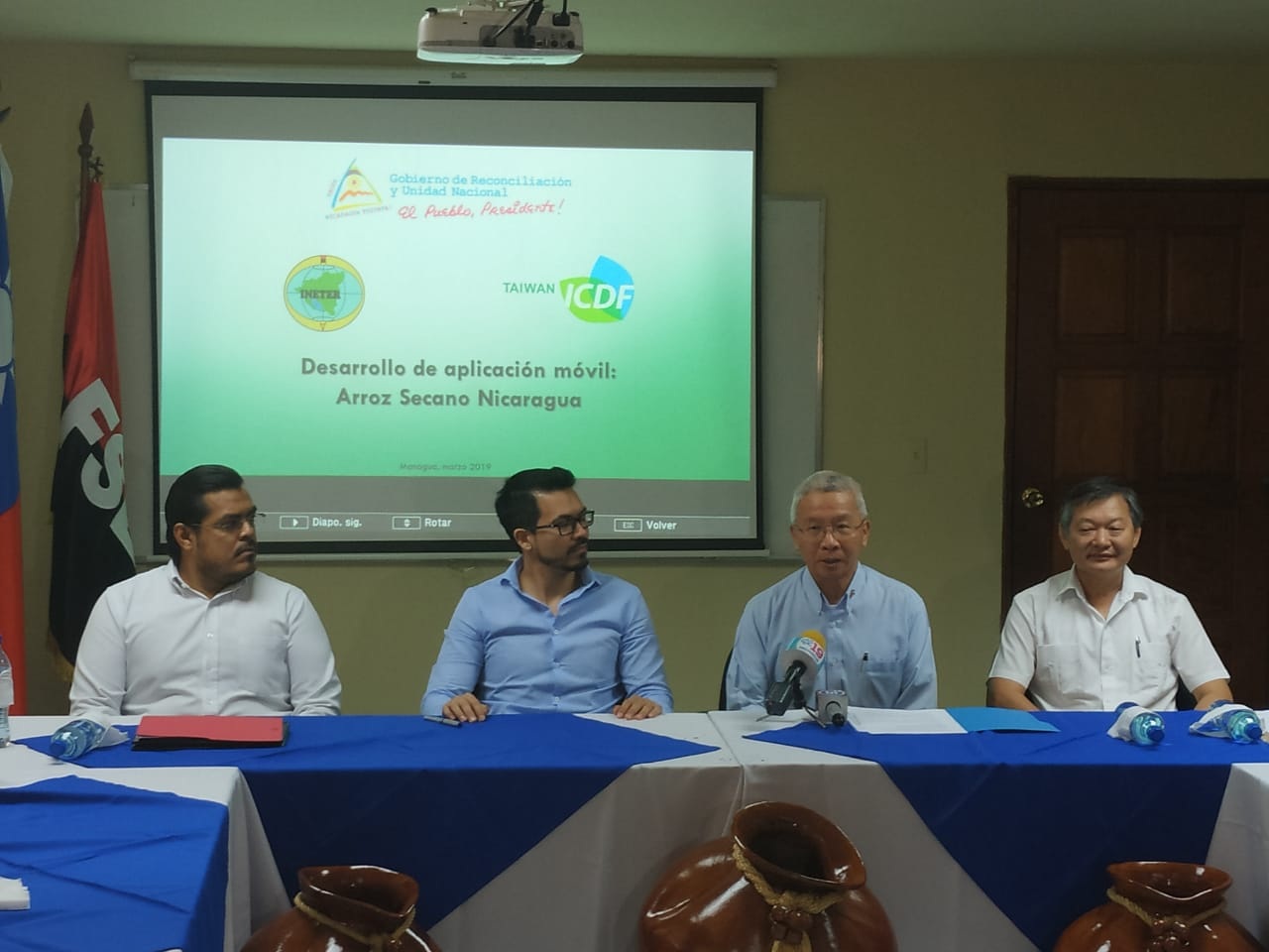 En el Instituto Nicaragüense de Estudios Territoriales (INETER) este 7 de marzo, el Jefe de la Misión Técnica de Taiwán Roberto Pan junto al Co-Director de INETER Vladimir Gutiérrez firmaron el “Convenio de Cooperación y Coordinación Técnica entre el INETER y la Misión Técnica de Taiwán para el Desarrollo de la Aplicación Móvil: Arroz Secano Nicaragua”. La firma del Convenio tuvo como testigo de honor al Encargado de Negocios a.i de la Embajada de la República de China (Taiwán) Iván Lo, y en la misma estuvieron presentes funcionarios del INETER, miembros de la Embajada y de la Misión Técnica de Taiwán.