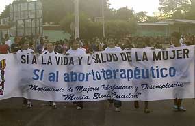 El Movimiento de Mujeres protestó ayer en el Día Internacional de La Mujer frente a la Corte Suprema de Justicia, CSJ, para que haya una resolución favorable al Aborto Terapeutico, que fue anulado por los diputados en condiciones electorales, que temían perder votos en las elecciones del pasado mes de Noviembre del 2006.