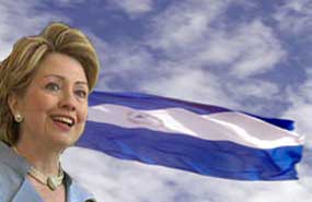 Hillary Clinton estuvo en el país nicaragüense durante el período de gobierno de Doña Violeta Barrios de Chamorro, 1990-1996. Regresó a tierra nicaragüense en el año 1998 cuando en Centroamérica se dio el devastador Huracán Mitch que destruyó la infraestructura de Nicaragua.