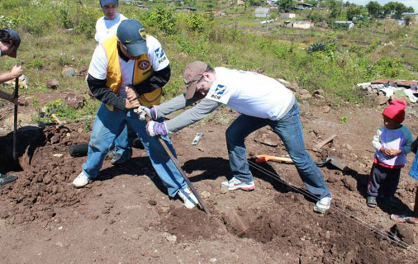 » Un Techo para mi país ahora se llama Techo-Nicaragua. En la gráfica vemos a dos voluntarios en plena faena de levantar una de las casas.