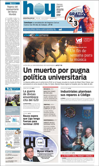 En la foto una imagen del que fue el diario impreso Hoy de Ecuador.