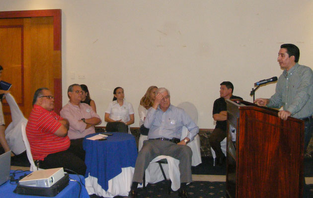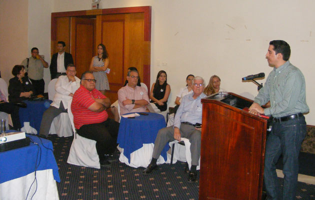 El especialista Edgard Bermudez de AVINA explicó a los empresarios e industriales sobre un Taller de Huellas hídricas en el cual será analizado las experiencias acumuladas por los sectores privados, estatales y sociales.