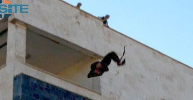 El grupo terrorista Estado Islámico difunde un video en el que lanza a cuatro hombres desde el tejado de un edificio en la ciudad de Fallujah, en el centro de Irak.
