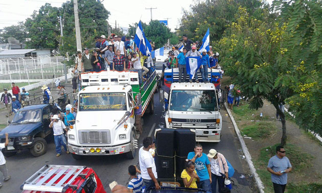Organizadores opositores calculan que más de 60 camiones ingresaron a Managua, fueron detenidos por varios retenes policiales, pero al final lograron superarlos. También afirman que las llantas de sus vehículos fueron ponchadas en reiteradas ocasiones con “miguelitos”.