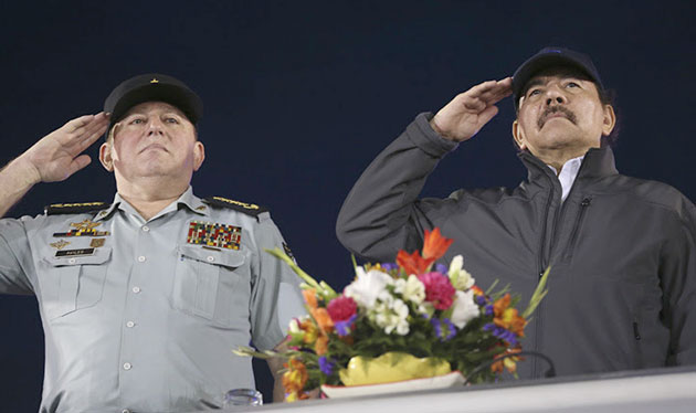 Foto J. Cajina Ayer el Presidente de la República, Daniel Ortega Saavedra, estuvo en el desfile militar por los 36 años de fundación del Ejército de Nicaragua, que se realizó en el jueves 3 de septiembre en la Plaza de la Fe “Juan Pablo II”. En fotos publicadas por el “19 digital” el mandatario aparece junto al jefe del ejército General Julio César Avilés Castillo pasando cerca de las tropas.