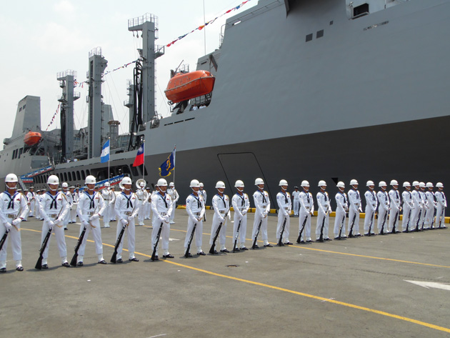 FotoLa Escuadra de Entrenamiento y Buena Voluntad de la Armada de la República de China ( Taiwán) que llegó ayer al Puerto de Corinto en el occidente de Nicaragua en Centroamérica está integrada por 723 tripulantes y cadetes con 56 oficiales. La flotilla permanecerá hasta el día Sábado 23 de abril y es liderada por el Contralmirante Hu Chih-Cheng y la misión es de afianzamiento de entrenamiento de los cadetes y tripulantes, dijo el embajador de Taiwán en Nicaragua señor Rolando Jer Ming Chuang.