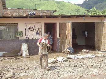 Muchos pobladores a la rivera del Río Grande de Matagalpa amanecieron extrayendo lodo de sus hogares.
